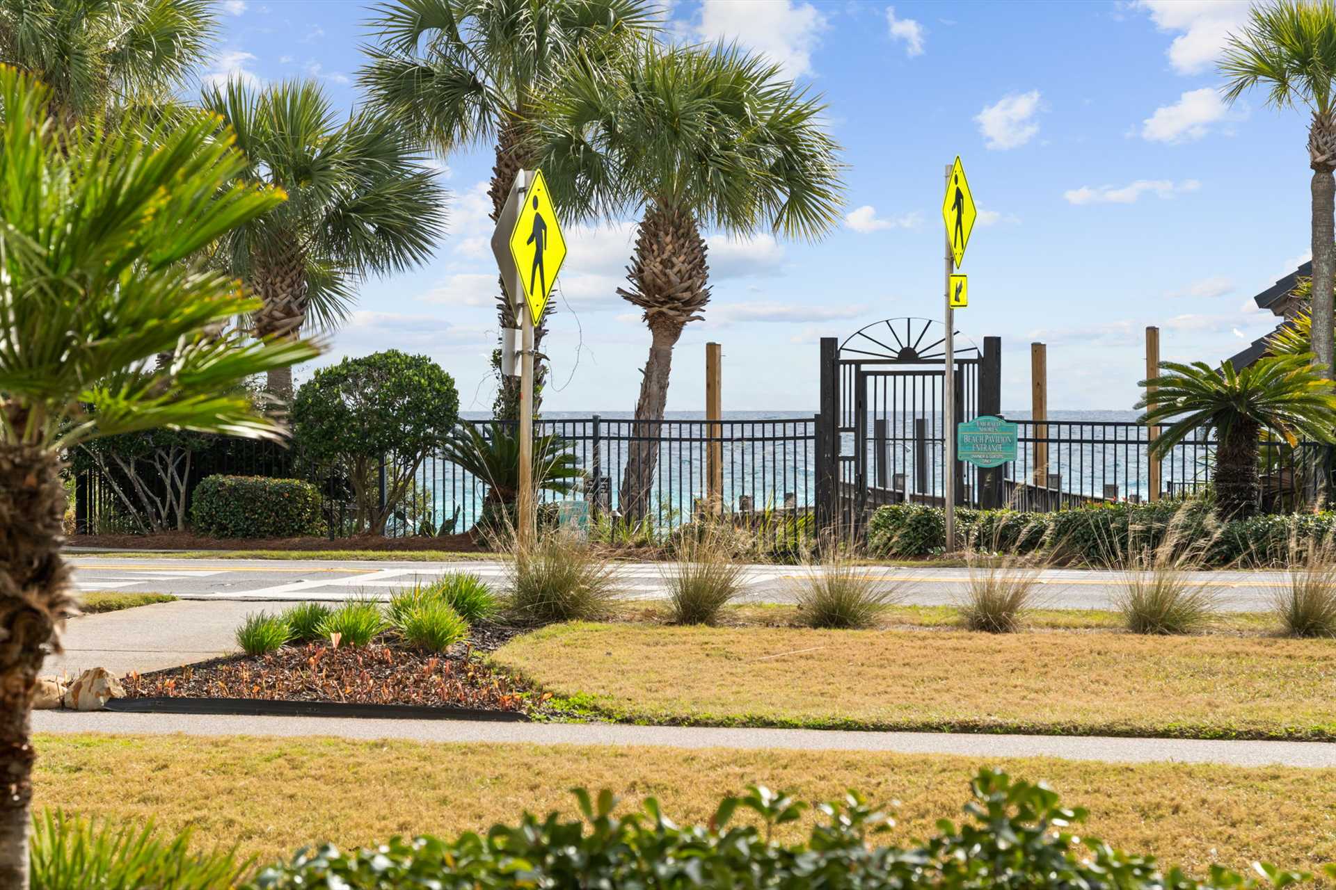 Forgot something for the beach? No worries—Alvin’s Island is just a few blocks away on Scenic Gulf Drive. Grocery runs are easy too, with Winn-Dixie, Publix, and Walmart all within 2–4 miles. And when you’re craving a treat, you’ll find Dairy Queen, Bruster’s, Bad Ass Coffee, and Starbucks just a short walk or bike ride away. A scenic 5-mile trail along Scenic Gulf Drive is perfect for biking, jogging, taking a walk with your 4 footed best friend, or soaking in a sunset stroll. The Crystal View features 100′ of private beach with sugar-white sands, and emerald green waters—an inviting setting for family vacations or couples retreats.