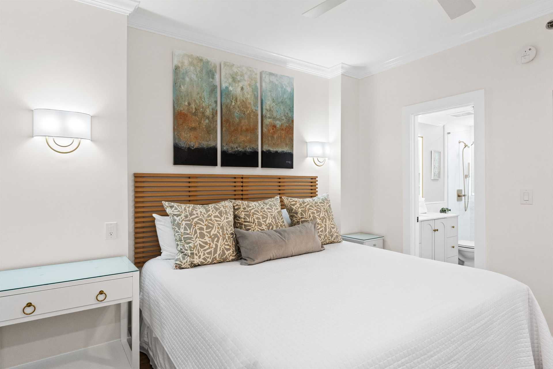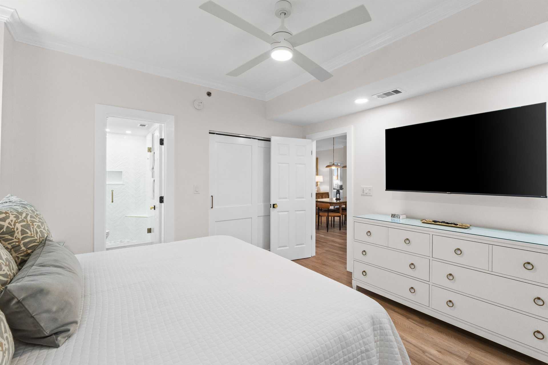 - Primary Bedroom (Bedroom 1): King bed with a private ensuite bathroom and walk-in shower