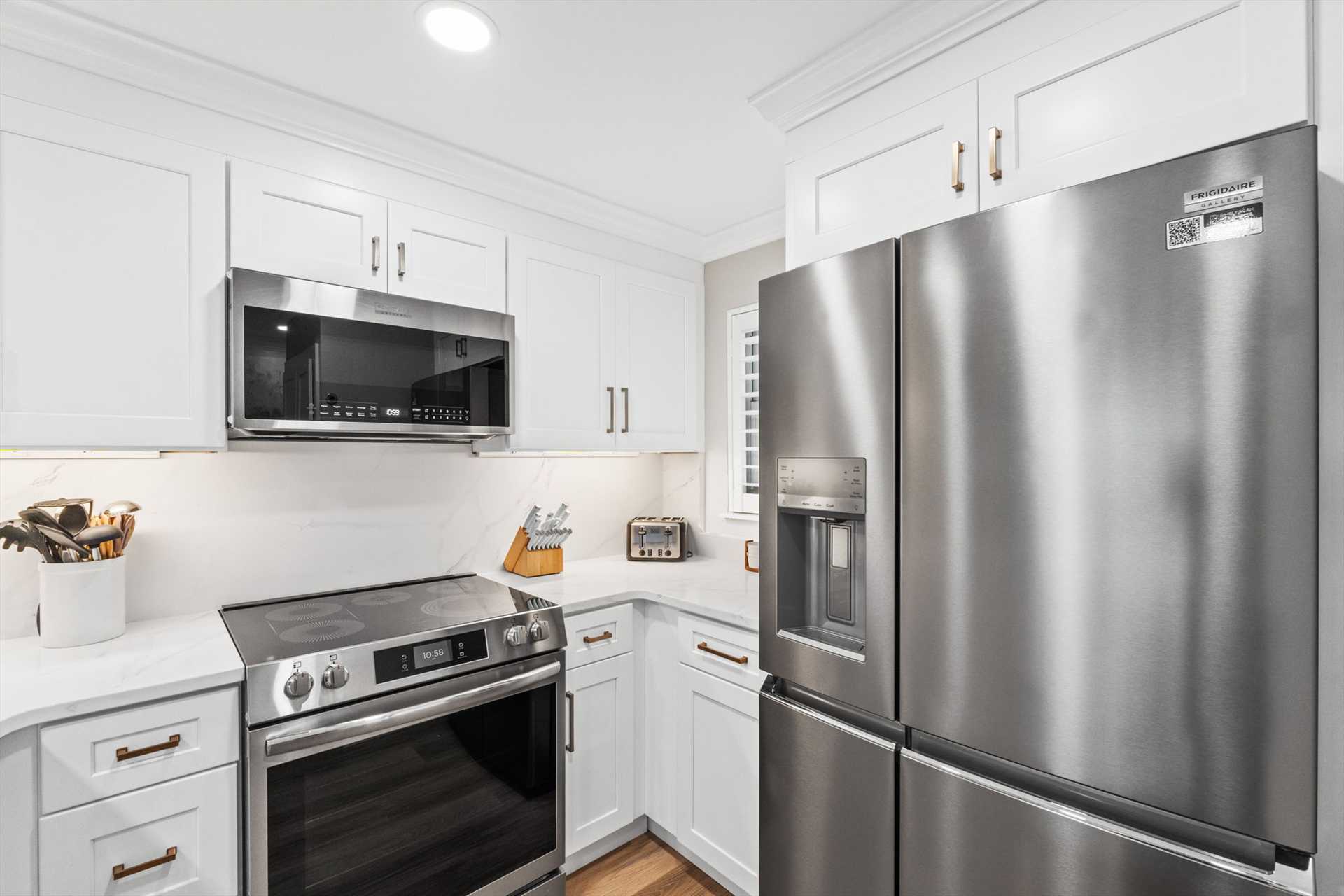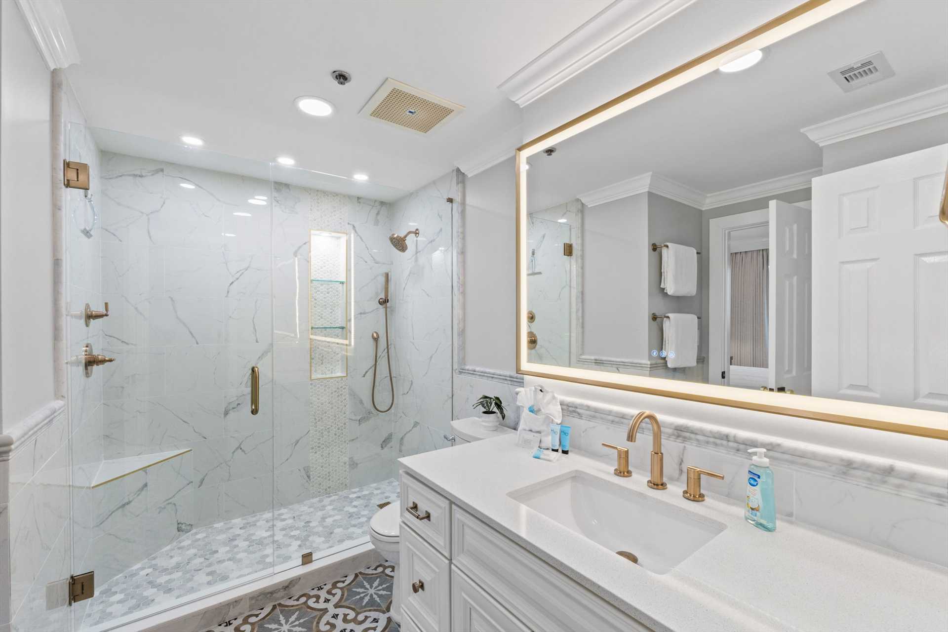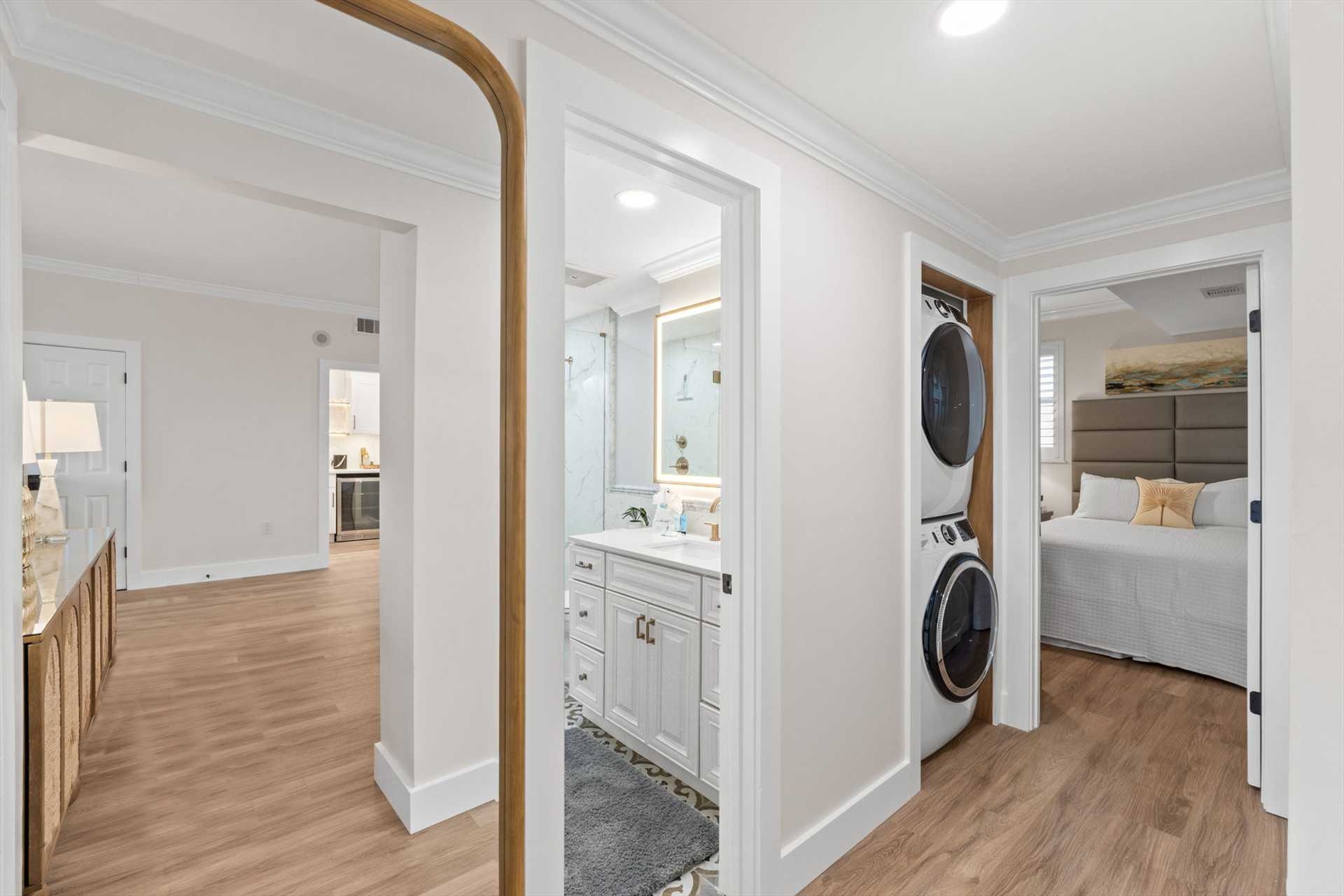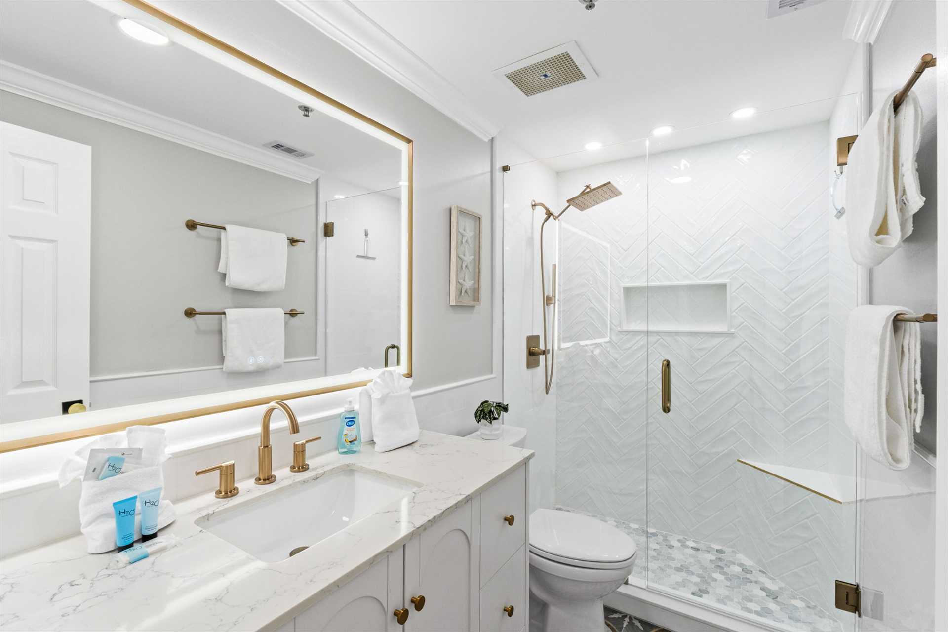 All three bathrooms feature walk-in showers, and every bedroom showcases brand-new King or Queen mattresses, fresh finishes, and a calm, coastal color palette.