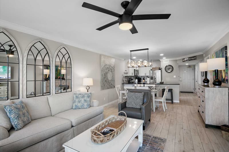 Escape to Gone Coastal, a completely renovated, ground-floor condo at Maravilla Resort in Miramar Beach. Offering all the comforts of home with a touch of luxury, this Maravilla condo in Destin, Florida, is better than any Miramar Beach hotel, with unbeatable access to the Gulf, resort amenities, and a pet-friendly policy. Perfect for families and couples, this spacious unit offers a small Gulf view, private beach access, and everything you need for a relaxing stay in one of the best resorts for families in Destin.